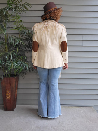 This is my latest vintage find on Poshmark. It's one of those items that that the seller didn't quite know the value of what she had. This jacket is a very rich, rare, wool blend. The patches on the elbows are genuine suede. The fringe is wool and mohair. A Ralph Lauren remake of this kind would cost at least $250. I paid $32 for this jewel.